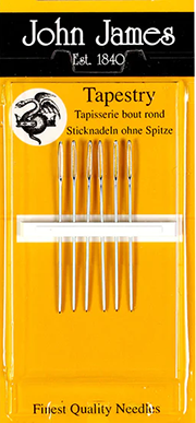 John James Tapestry needles have a longer eye which makes them ideal for threading, have blunt rounded ends that slip easily through canvas holes and woven fabrics without snagging or piercing.