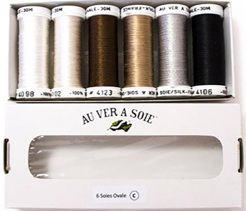 Soie Ovale, fil “plat”, peu retordu d’une brillance intense, fabriquée en base de Pure Soie.