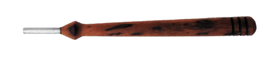 Pin Pushers: Wooden handle with wood variance, featuring a steel concave tip for pushing pins.Proximately 5 inches long.