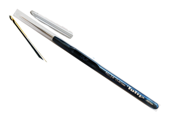 Crochets Tulip – Fabrication japonaise de précision Conçus pour offrir confort et maîtrise, ces crochets disposent de manches ergonomiques en plastique et mesurent environ 14 cm de long. Chaque crochet est livré avec un capuchon de protection pour un rangement en toute sécurité. La pointe finement polie glisse sans accrocs à travers les fils, garantissant un travail de crochet fluide, précis et régulier.