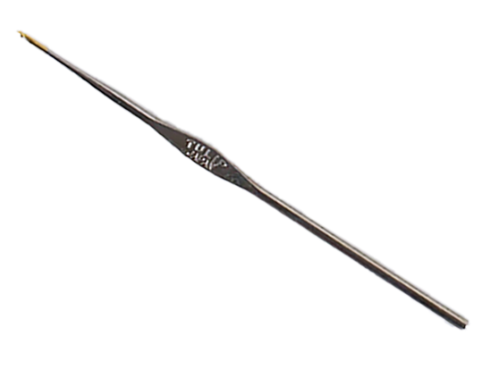 Les crochets en métal Tulip fabriqués au Japon mesurent environ 5 1/2 pouces de long. Chacune est équipée d'un capuchon de protection. La pointe du crochet finement polie permet une couture douce sans accrocher les fils.