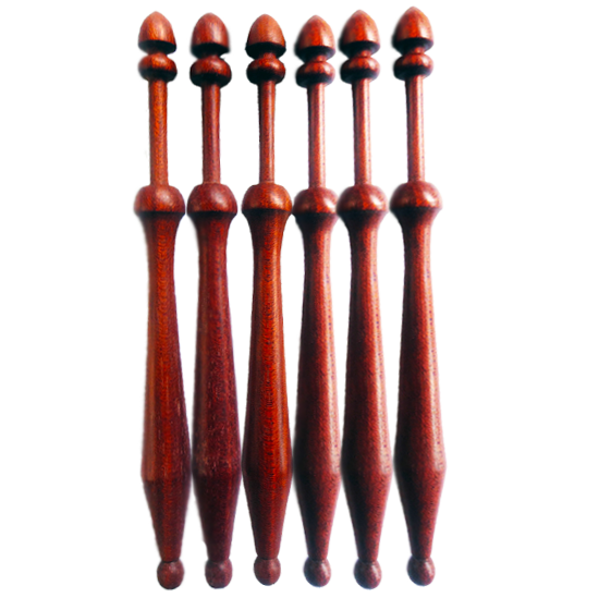 Fuseau Petite Nation_1 – Bois Bloodwood Le fuseau Petite Nation_1 est fabriqué en Bloodwood, un bois tropical d'Amérique du Sud réputé pour sa densité et sa beauté remarquable. Connu scientifiquement sous le nom de Brosimum rubescens, le Bloodwood séduit par sa couleur rouge intense à brun-rougeâtre et par sa dureté exceptionnelle, idéale pour la dentelle aux fuseaux. Son poids assure une excellente tension du fil, offrant précision et confort de travail. Comme la plupart des bois nobles, le Bloodwood s’assombrit naturellement avec le temps par un processus d’oxydation, développant une patine riche et élégante.