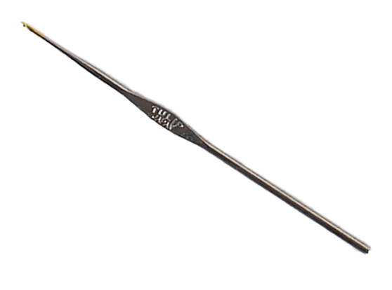 Tulip metal hooks made in Japan are about 5 1/2 inches long. Each comes with a protective cap. The finely polished hook tip provides a smooth sewing without catching on the threads.