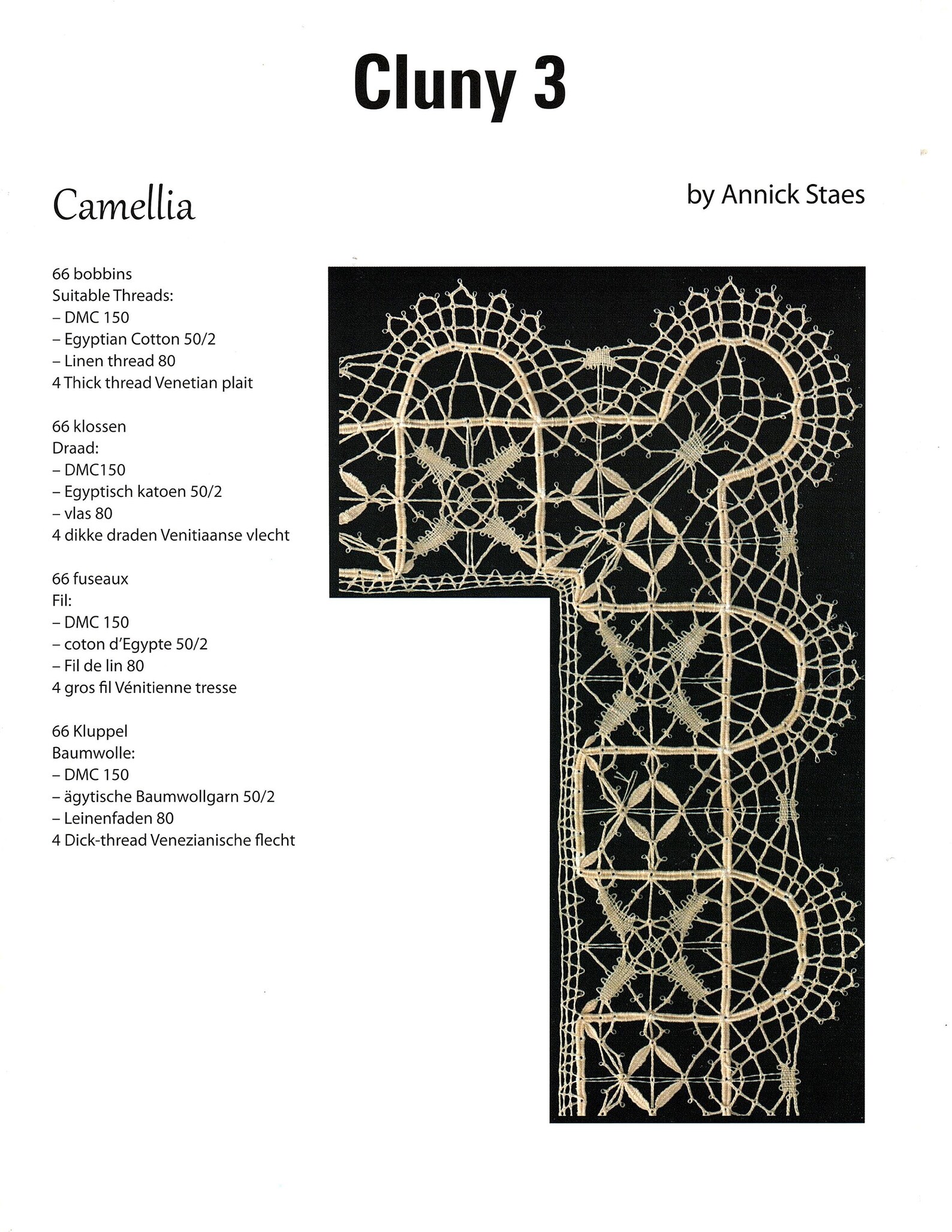 Une collection de cinq modèles de dentelle aux fuseaux de Cluny de niveau avancé, soigneusement sélectionnés par la célèbre dentellière Annick Staes.